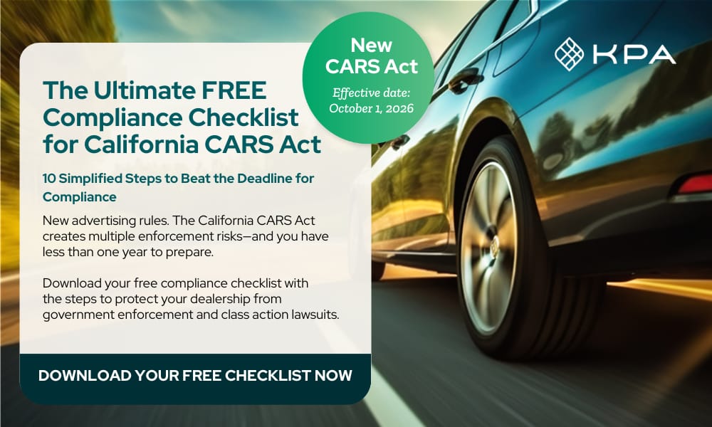 KPA has equipped more than 15,000 dealerships with the compliance tools they need to avoid lawsuits and fines — and now we’re helping them meet this deadline with confidence.