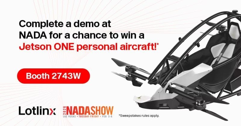Schedule a demo at the NADA Show to see for yourself and you’ll have a chance to win a $148K Jetson ONE personal aircraft (pre-schedule to double your chances): Lotlinx.com/NADA2026