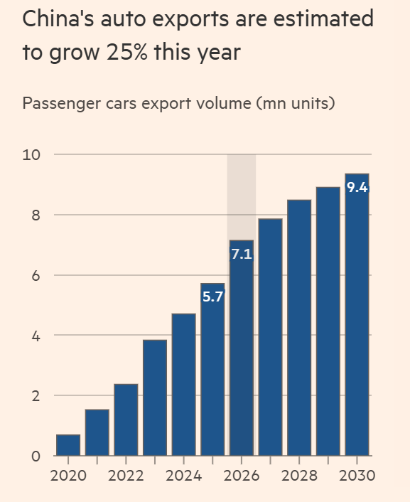 Big picture: China now exports more vehicles than any other country in the world—7.1 million units in 2025, a rise from 5.9 million the previous year. And that number is only going up.