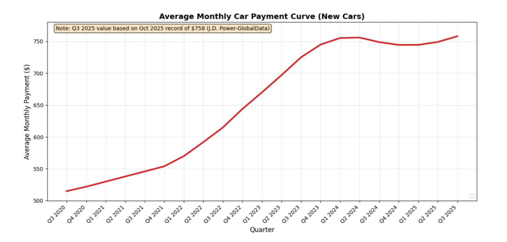 At the same time, the average monthly payment hit a record $758, driven by longer 84-month loans (now 11.8% of financed sales) and larger loan balances.