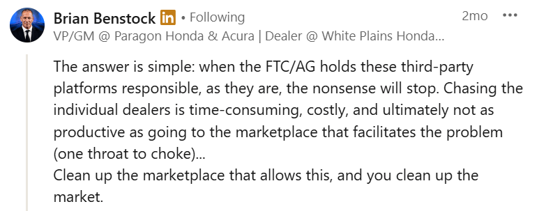Big picture: When platforms become essential infrastructure for dealers, that dependency creates more obligation for platforms to get their policies aligned, not less.