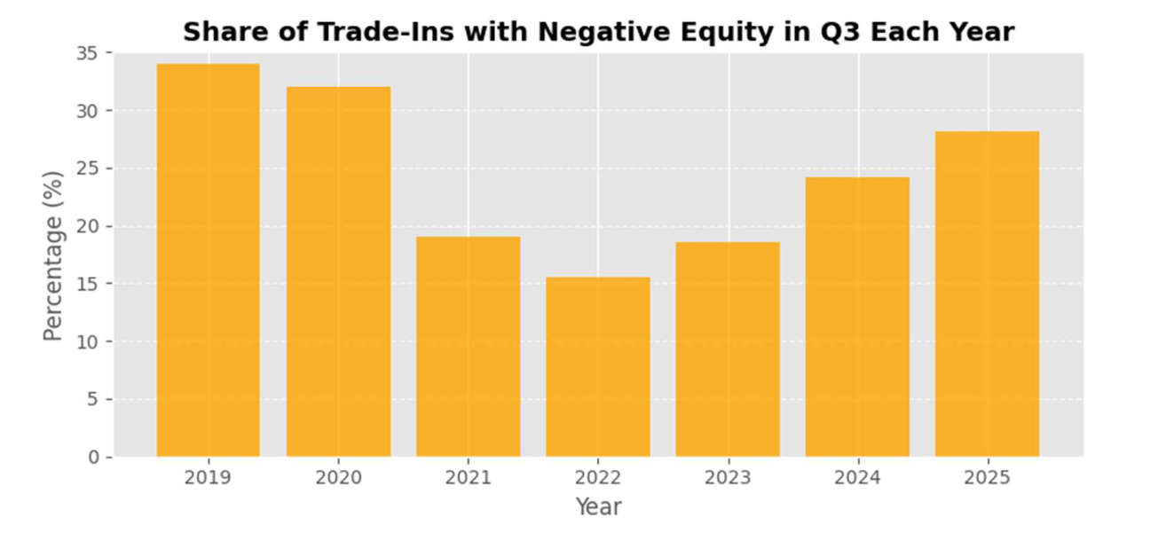 And repossessions are up 20% YoY, with loan balances about $5K higher than 2019, meaning more negative equity (chart above) and more distressed trade-ins hitting the market.